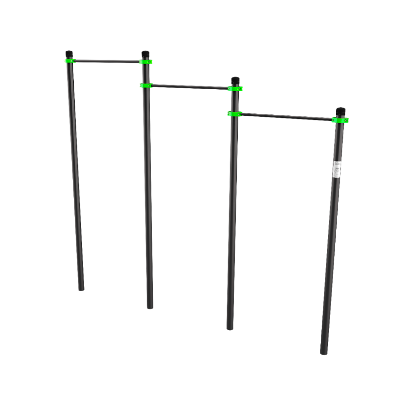Комплекс из трёх перекладин, соответствующих требованиям ВФСК «ГТО» для выполнения упражнений на подтягивание. Разная высота перекладин делает тренажёр универсальным – им могут пользоваться дети, подростки и взрослые. Отличное решение для школьных, дворовых площадок, уличных спорткомплексов и компактных спортивных зон на стадионах.