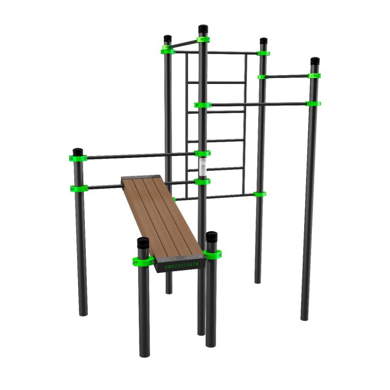 Компактная станция для тренировок с акцентом на пресс, верхнюю часть тела и растяжку. Комбинация скамьи, турников и шведской стенки позволяет эффективно прокачивать мышцы корпуса, осанку и гибкость. Отличный вариант как для самостоятельных занятий, так и для групповых тренировок.