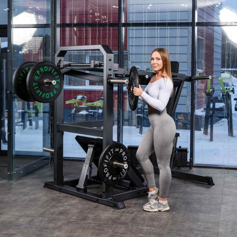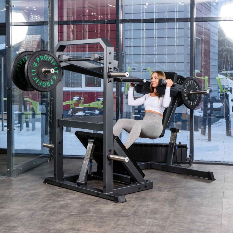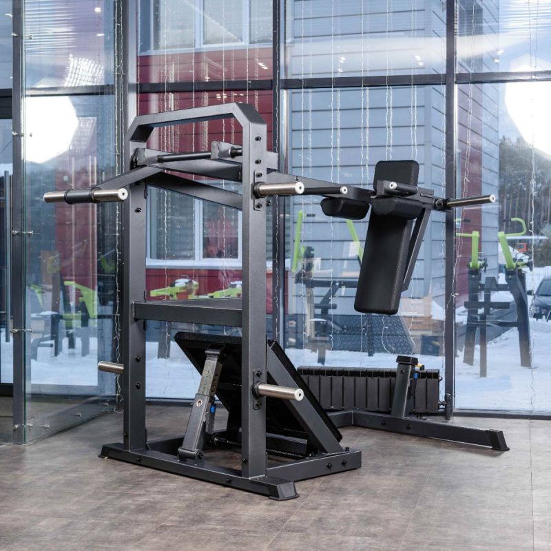 Тренажер обеспечивает глубокую и контролируемую траекторию приседа, позволяя эффективно прорабатывать квадрицепсы, ягодичные мышцы и заднюю поверхность бедра. Регулируемая по углу платформа помогает подобрать оптимальное положение стоп, а высокая спинка и подушки под плечи надёжно фиксируют корпус на протяжении движения. Стартовый фиксатор и демпферы делают тренировку безопасной, плавной и комфортной как для опытных спортсменов, так и для пользователей с разным уровнем подготовки.