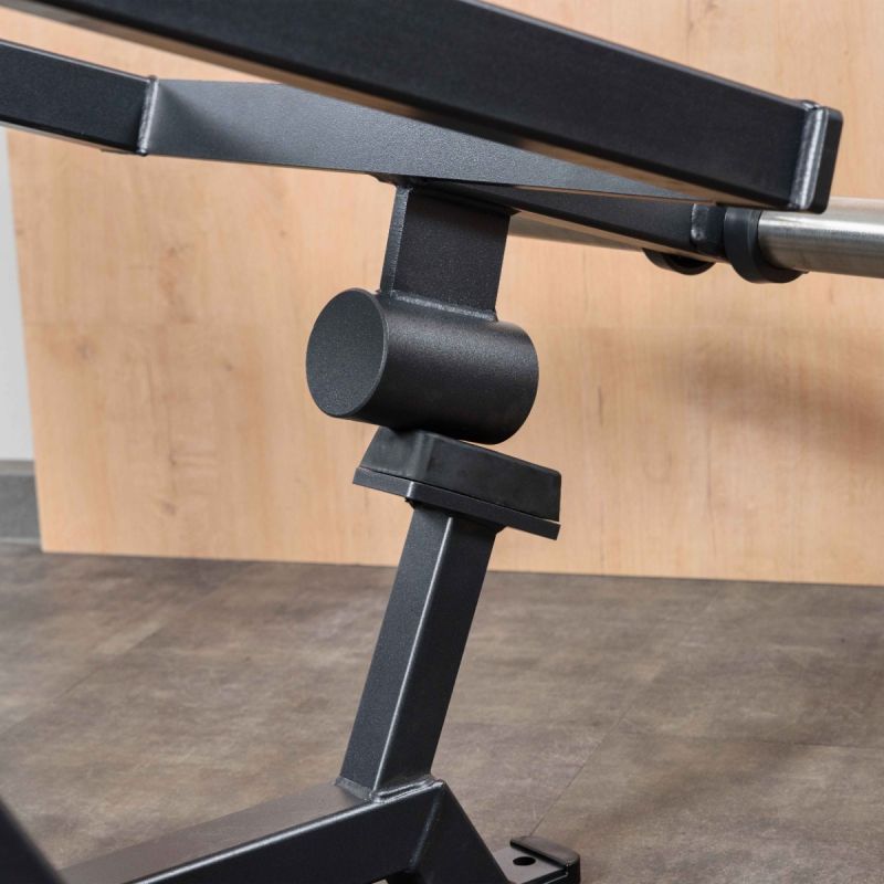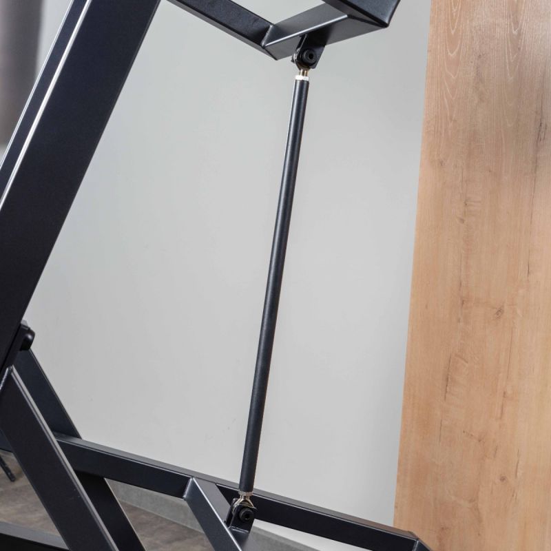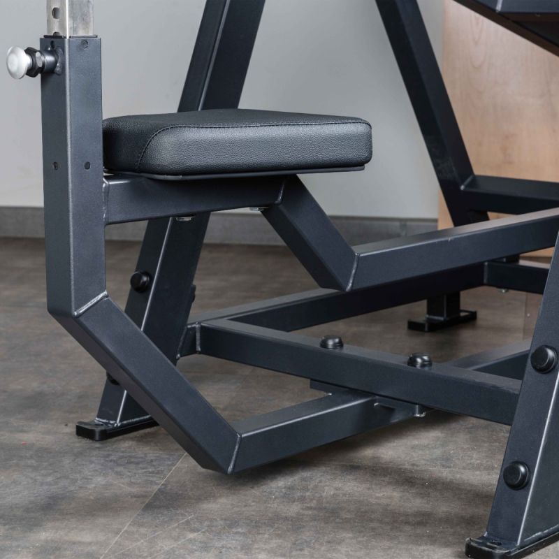 - Подвижный рычаг снабжён встроенным противовесом, компенсирующим начальную массу конструкции и обеспечивающим лёгкий старт без дополнительных дисков – это повышает комфорт и снижает нагрузку на плечевые суставы в начале упражнения.
