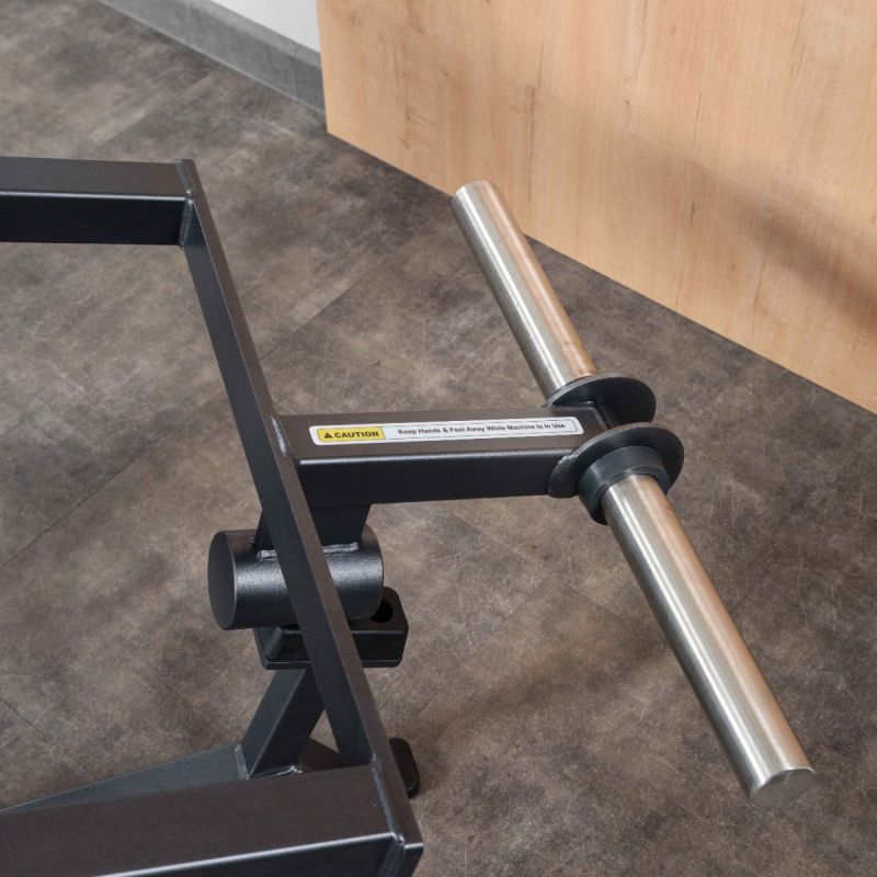 - Основная рукоять представляет собой цельную конструкцию длиной 1210 мм из металлического прутка диаметром 30 мм с мягкой ромбовидной накаткой. Рукоять установлена на подшипниковых узлах и перемещается по дугообразной траектории, что обеспечивает естественный ход движения и правильную биомеханику упражнения. Торцы рукояти закрыты металлическими заглушками с болтовой фиксацией.
