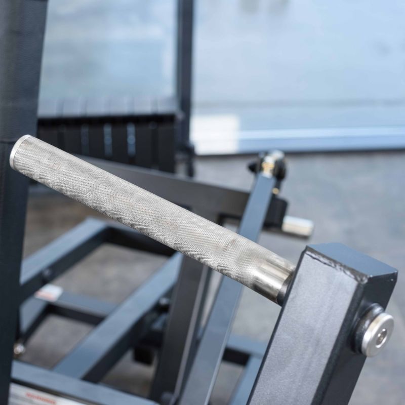 - На рычаге установлено два цельнолитых накопителя под свободные веса длиной 275 мм (рабочая длина 255 мм) и диаметром 45 мм, рассчитанных на диски с посадочным диаметром 50 мм.