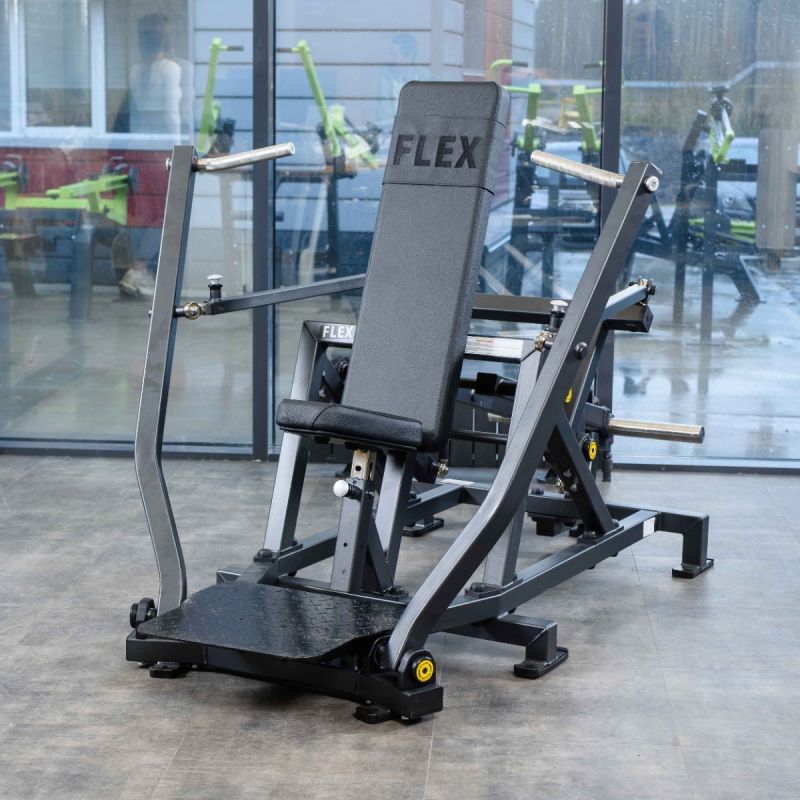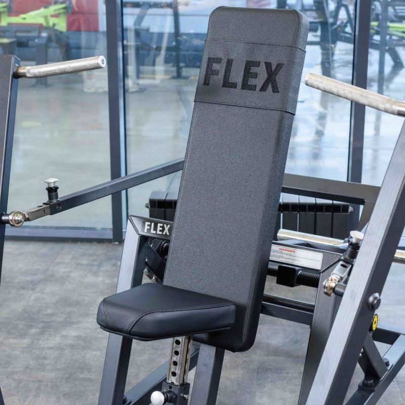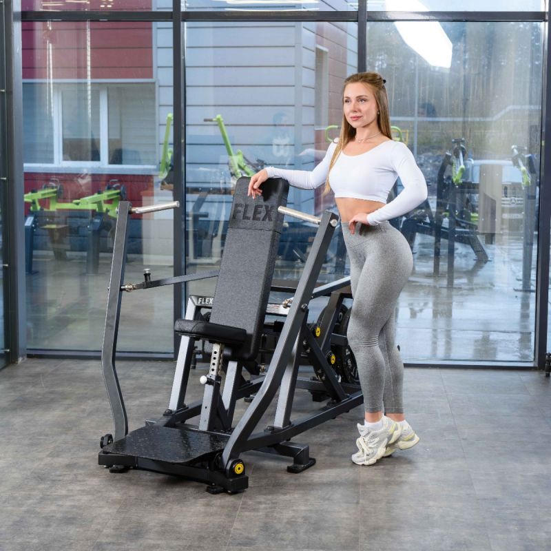 Профессиональный тренажёр для коммерческого использования A701L Жим от груди предназначен для изолированной проработки больших и малых грудных мышц, передних пучков дельтовидных и трицепсов. Биомеханика движения точно повторяет естественную траекторию жима лёжа, обеспечивая стабильную нагрузку и комфортное выполнение упражнения.