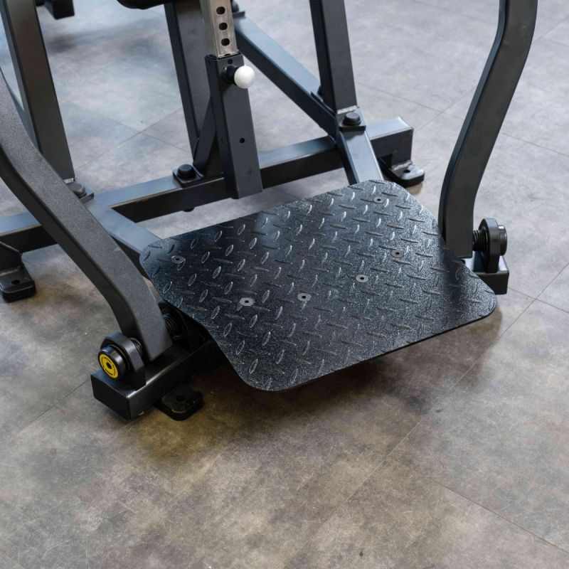 - Для удобной опоры в нижней части тренажёра предусмотрена металлическая площадка для ног 475×390 (по выступам) из листового металла, обеспечивающая устойчивость и безопасность при выполнении упражнения.