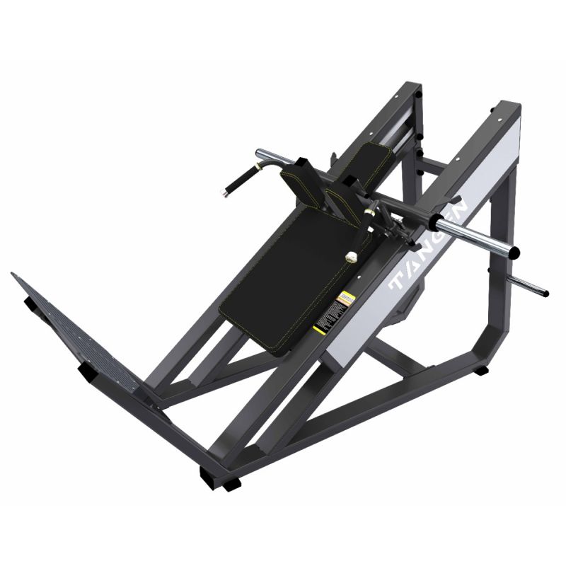Профессиональный тренажёр для коммерческого использования A3057-AL Гакк Машина предназначен для тренировки мышц нижней части тела – квадрицепсов, ягодичных и приводящих мышц, а также частично бицепсов бедра. Конструкция с наклонной платформой и опорой спины обеспечивает безопасное выполнение приседаний без осевой нагрузки на позвоночник и исключает участие мышц торса и плечевого пояса.