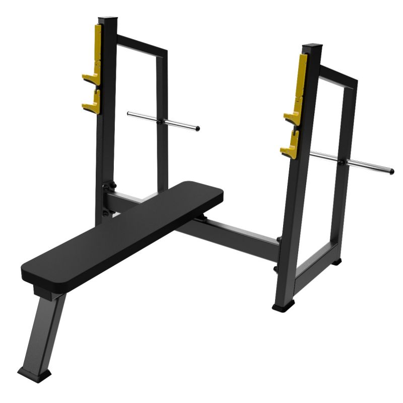 Профессиональный тренажёр для коммерческого использования A3043 Скамья-стойка для жима штанги лёжа предназначен для выполнения базового упражнения – жима штанги в горизонтальном положении. Конструкция обеспечивает устойчивость, комфорт и безопасность при работе с большими весами, а также удобное хранение дисков.